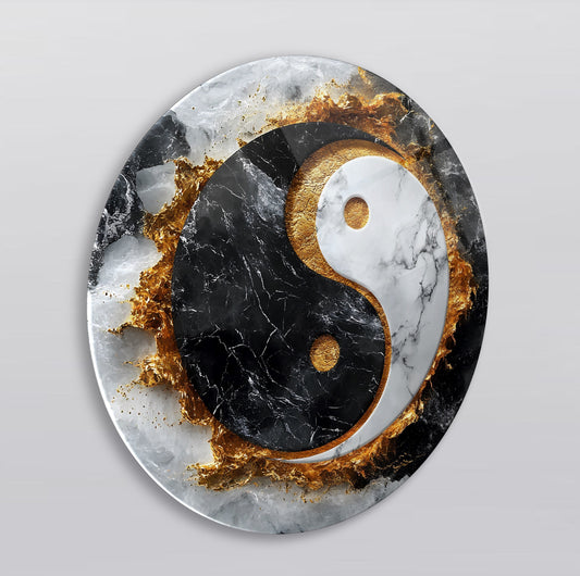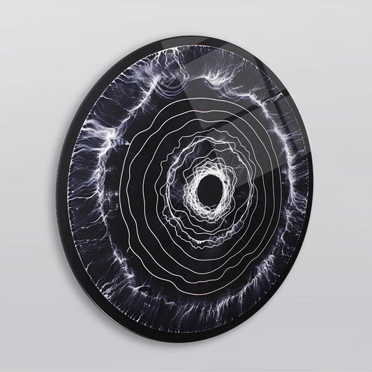 Siyah Beyaz Sonsuz Döngü Yuvarlak Cam Tablo