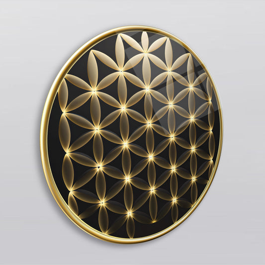 Gold Yaşam Çiçeği Yuvarlak Cam Tablo
