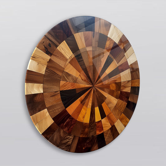 Soyut Ahşap Desenler Yuvarlak Cam Tablo