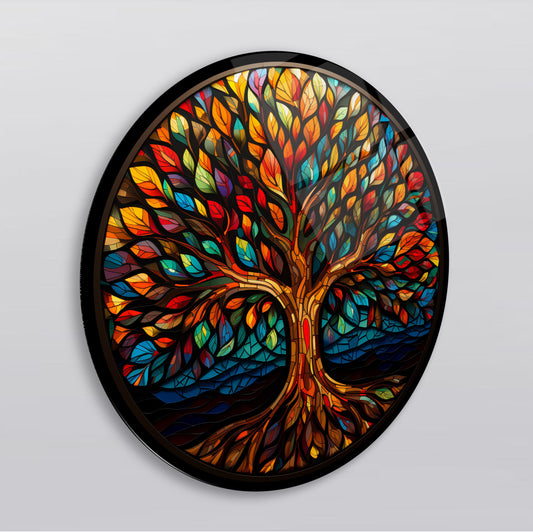 Renkli Hayat Ağacı Yuvarlak Cam Tablo