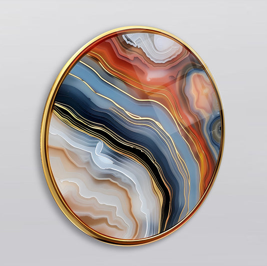 Mermer Desen Soyut Yuvarlak Cam Tablo