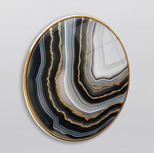 Soyut Gold Damla Yuvarlak Cam Tablo