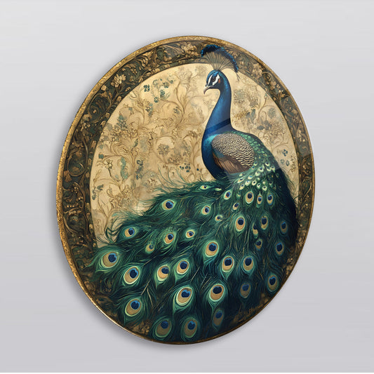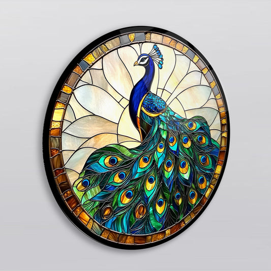 Vitray Desen Yeşil Tavus Kuşu Yuvarlak Cam Tablo
