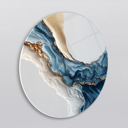 Mavi Gold Mermer Desen Yuvarlak Cam Tablo