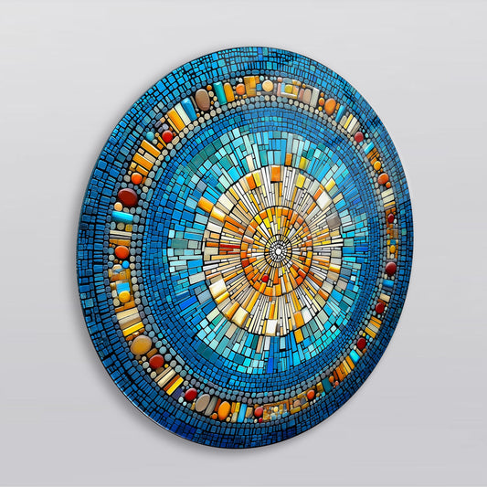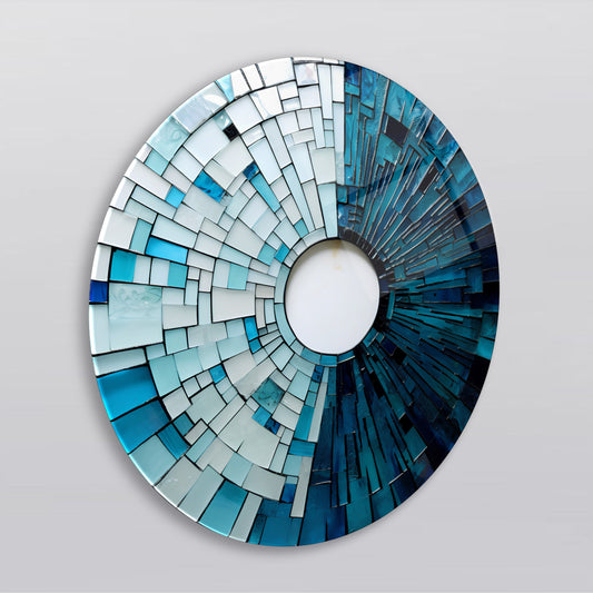 Mozaik Desen Soyut Mavi Yuvarlak Cam Tablo