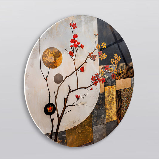 Kiraz Çiçeği Yuvarlak Cam Tablo
