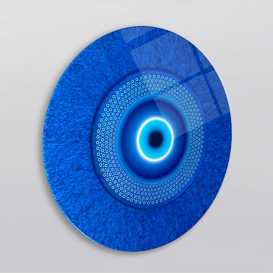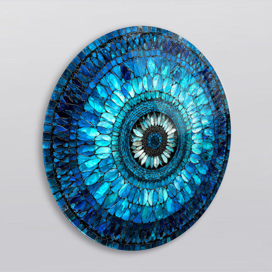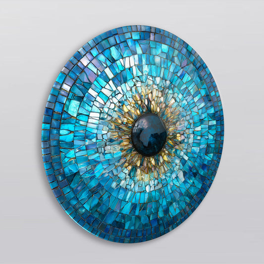 Mozaik Desen Mavi Göz Bebeği Yuvarlak Cam Tablo