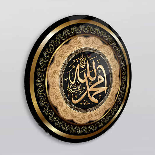 Allah Muhammed Lafzı Dini Yuvarlak Cam Tablo