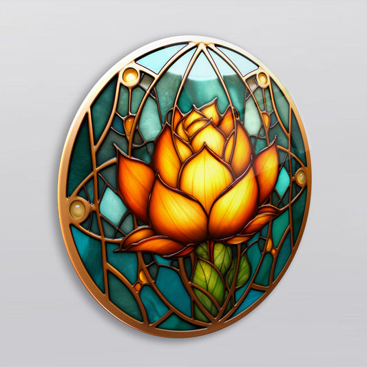 Vitray Desen Sarı Çiçek Yuvarlak Cam Tablo