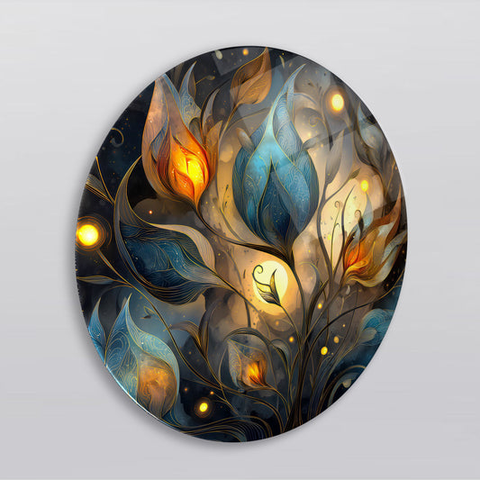 Renkli Çiçekler Yuvarlak Cam Tablo