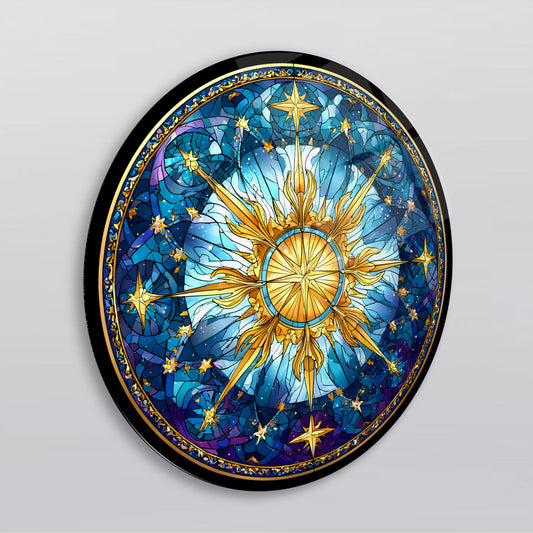 Vitray Desen Gold Yıldız Yuvarlak Cam Tablo