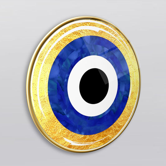 Gold Mavi Nazar Boncuğu Yuvarlak Cam Tablo