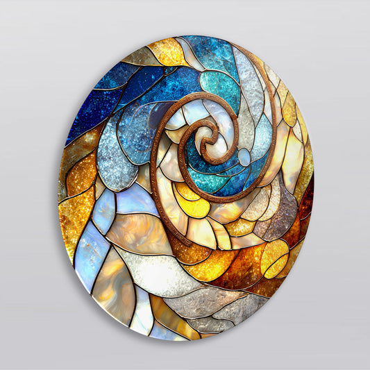 Renkli Vitray Desen Yuvarlak Cam Tablo