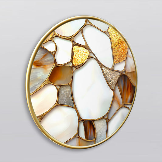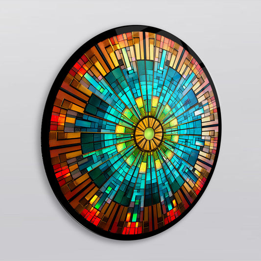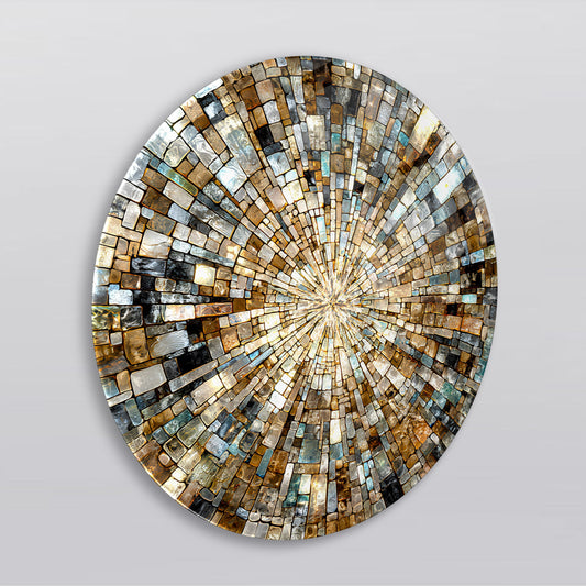 Soyut Mozaik Desen Yuvarlak Cam Tablo