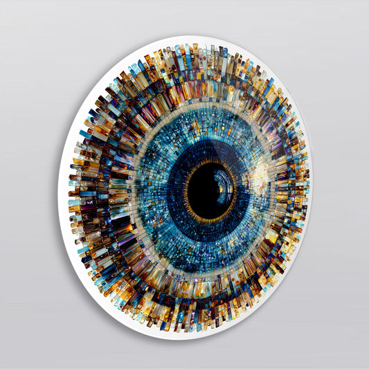 Mozaik Desen Göz Bebeği Yuvarlak Cam Tablo