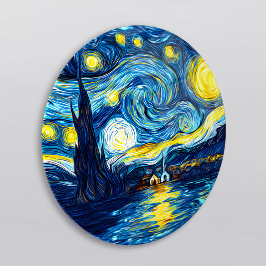 Yıldızlı Gece Yuvarlak Cam Tablo