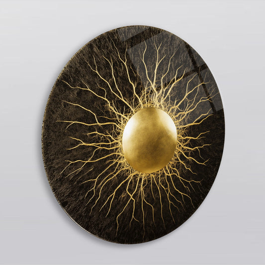Soyut Gold Gözbebeği Yuvarlak Cam Tablo