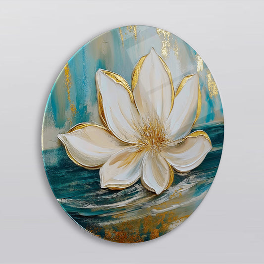 Gold Lotus Çiçeği Yuvarlak Cam Tablo