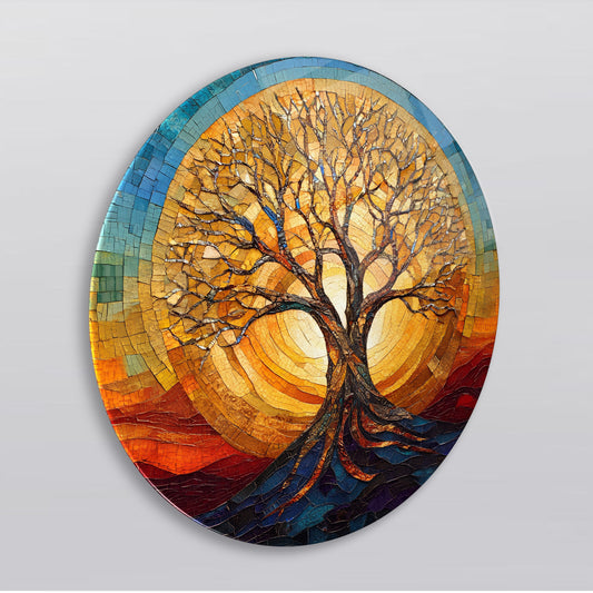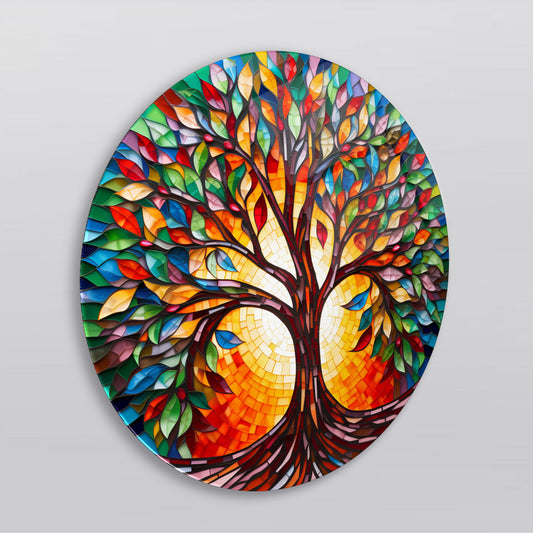 Vitray Desen Hayat Ağacı Yuvarlak Cam Tablo