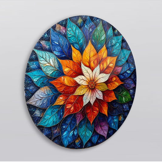 Çiçekli Mandala Yuvarlak Cam Tablo