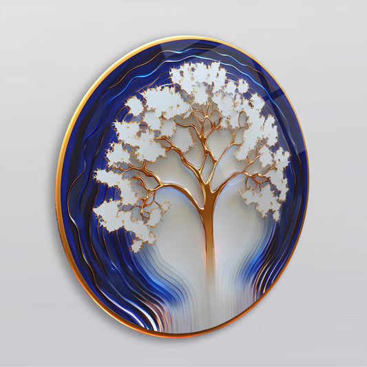 Mavi Gold Hayat Ağacı Yuvarlak Cam Tablo