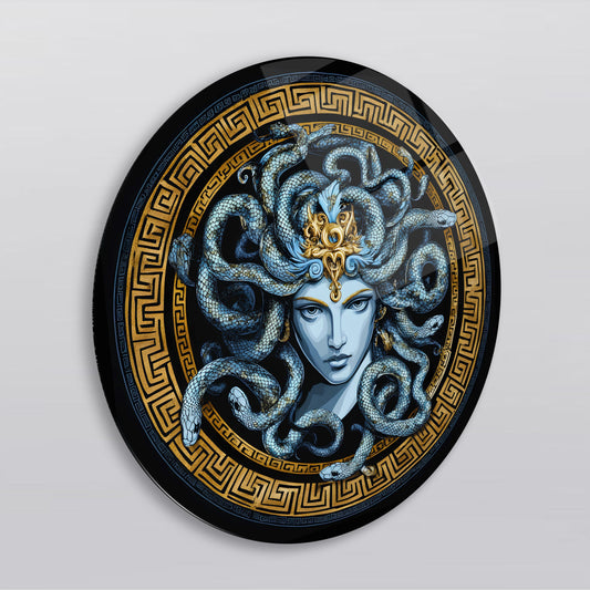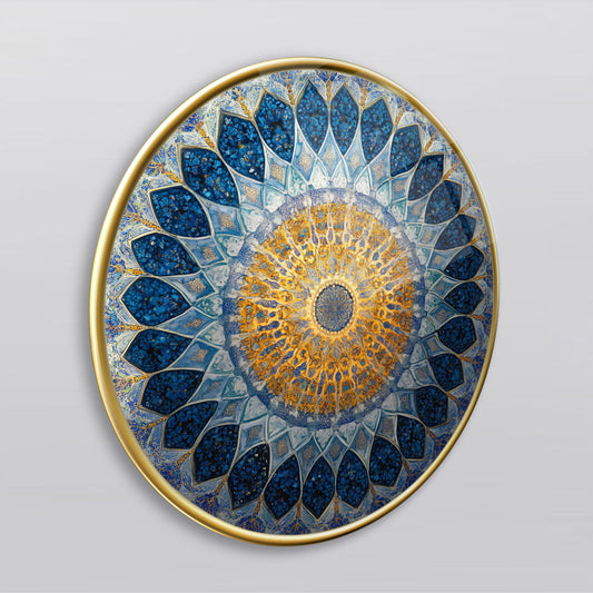 Mavi Gold İslami Sanat Yuvarlak Cam Tablo