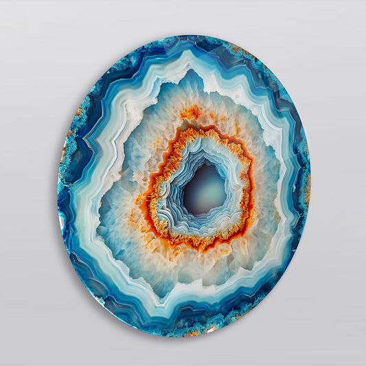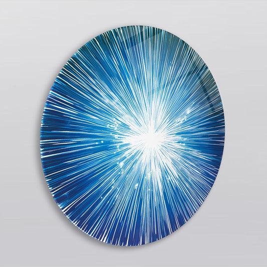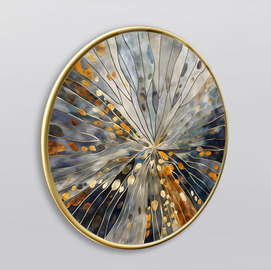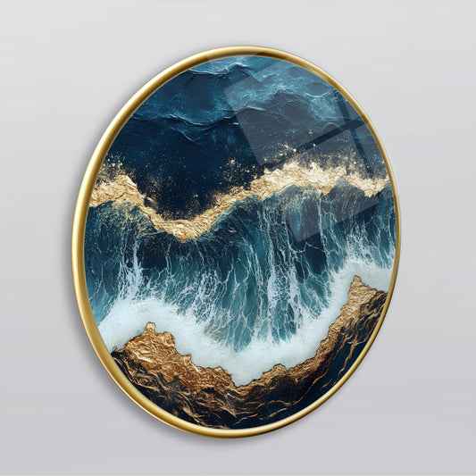 Soyut Mavi Gold Deniz Yuvarlak Cam Tablo