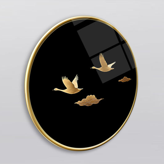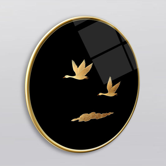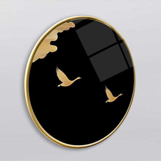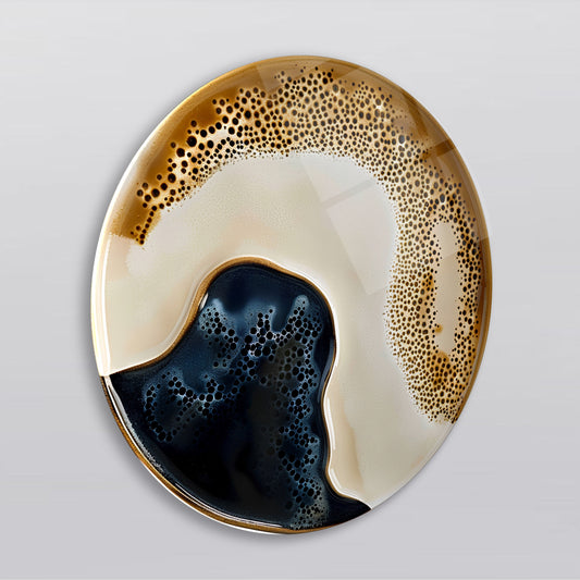 Soyut Gold Damla Yuvarlak Cam Tablo