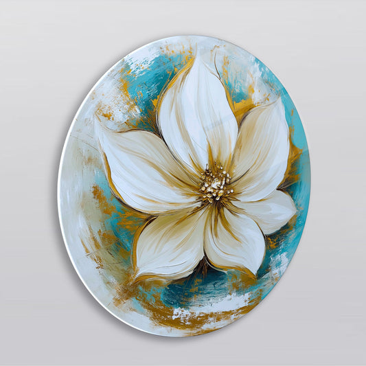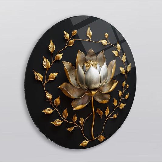 Gold Lotus Çiçeği Yuvarlak Cam Tablo