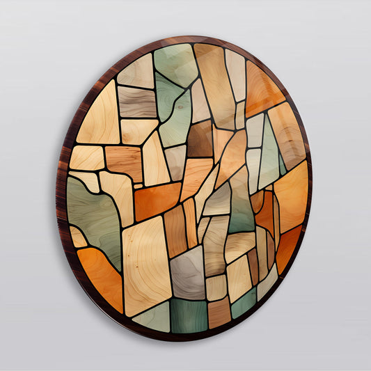 Soyut Ahşap Desenler Yuvarlak Cam Tablo