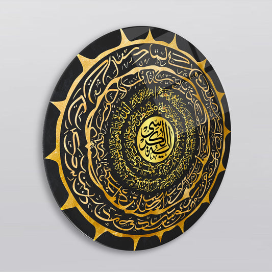 Ayetel Kursi İslami Hat Sanatı Yuvarlak Cam Tablo