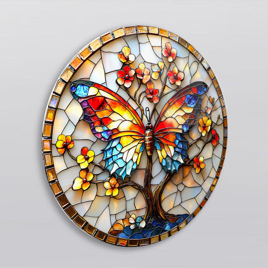 Mozaik Desen Renkli Kelebek Yuvarlak Cam Tablo