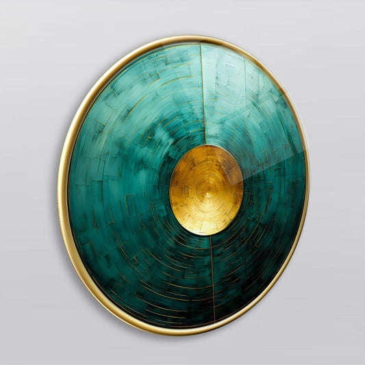 Soyut Gold Yeşil Yuvarlak Cam Tablo