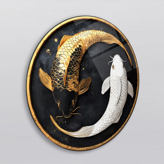 Beyaz Gold Balıklar Yuvarlak Cam Tablo
