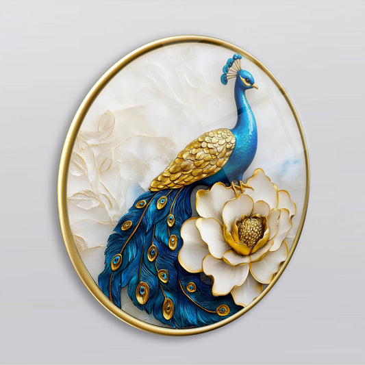 Mavi Tavus Kuşu Yuvarlak Cam Tablo