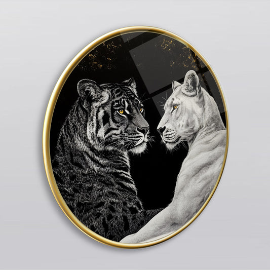 Aslan ve Kaplan Yuvarlak Cam Tablo