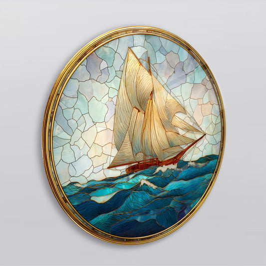 Vitray Desen Yelkenli Gemiler Yuvarlak Cam Tablo