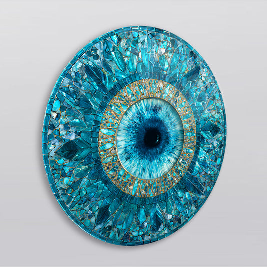 Mozaik Desen Göz Bebeği Yuvarlak Cam Tablo