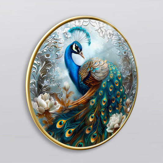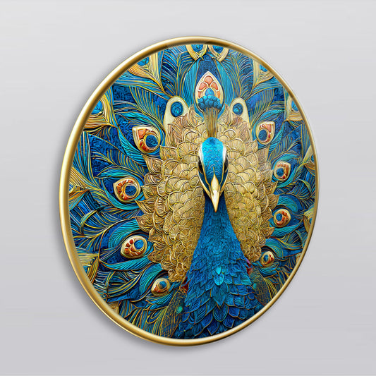 Mavi Tavus Kuşu Yuvarlak Cam Tablo
