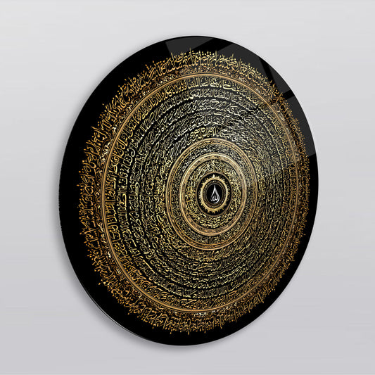 Ayetel Kursi İslami Hat Sanatı Yuvarlak Cam Tablo