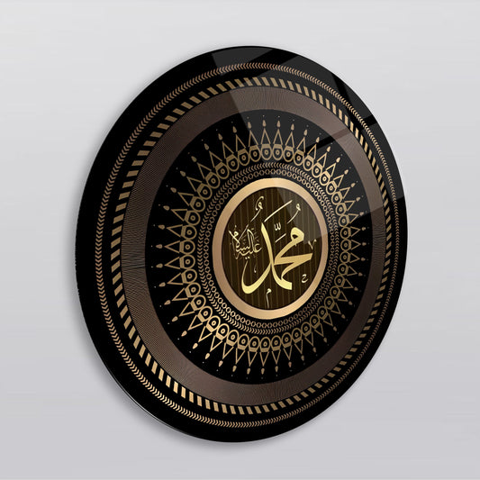 Gold Muhammed Lafzı Dini Yuvarlak Cam Tablo