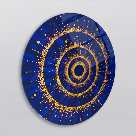 Soyut Mavi Gold Yuvarlak Cam Tablo