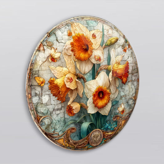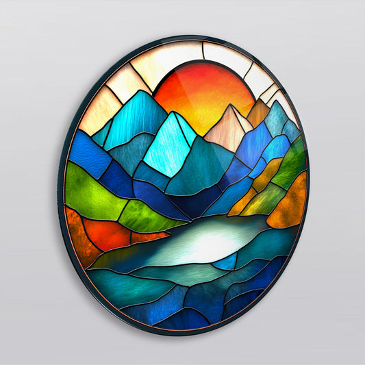 Vitray Desen Renkli Manzara Yuvarlak Cam Tablo