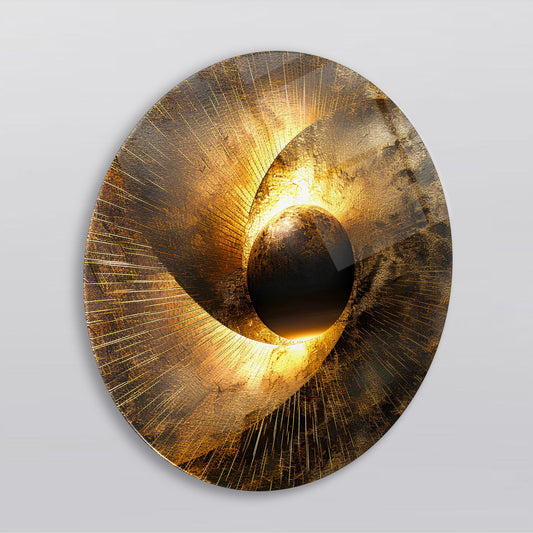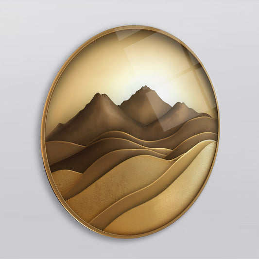 Gold Soyut Dağ Manzarası Yuvarlak Cam Tablo