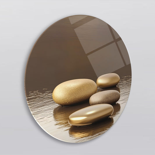 Gold Çakıl Taşları Yuvarlak Cam Tablo