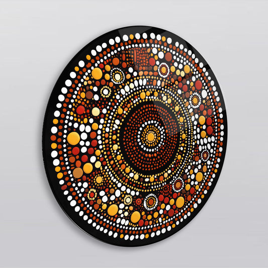 Soyut Etnik Desenler Yuvarlak Cam Tablo