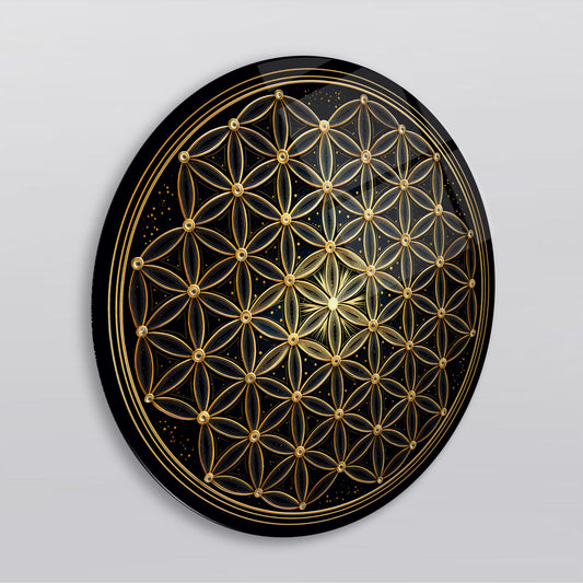Gold Yaşam Çiçeği Yuvarlak Cam Tablo