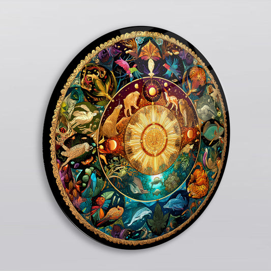 Renkli Hayvan Figürleri Yuvarlak Cam Tablo