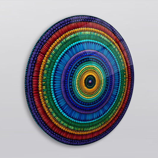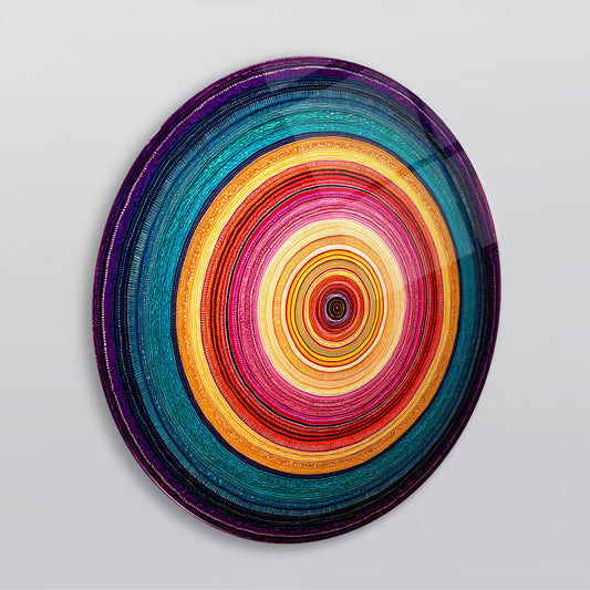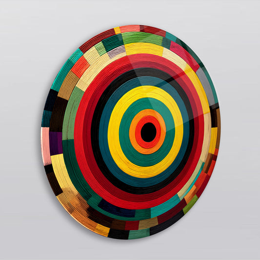 Soyut Renkli Halkalar Yuvarlak Cam Tablo