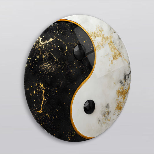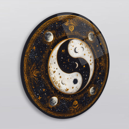 Gold Ying Yang Yuvarlak Cam Tablo